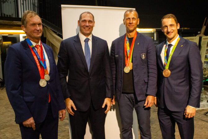 President kutsus kõne lõppedes rahva ette Allar Raja ja Tõnu Endreksoni, kes tegid avalikuks tippspordist loobumise, tänasid kõiki sõpru, abilisi ja toetajaid. Mehi tänati tehtu eest tugeva aplausiga.